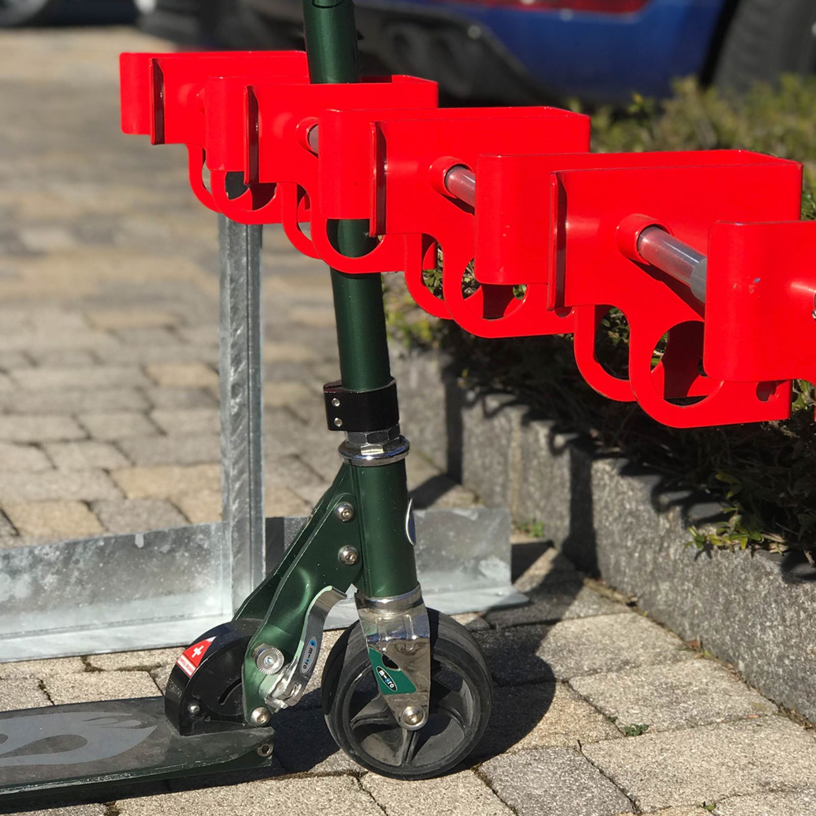 Rastrelliera monopattini con fissaggio tramite manubrio, resistente ed elegante.
